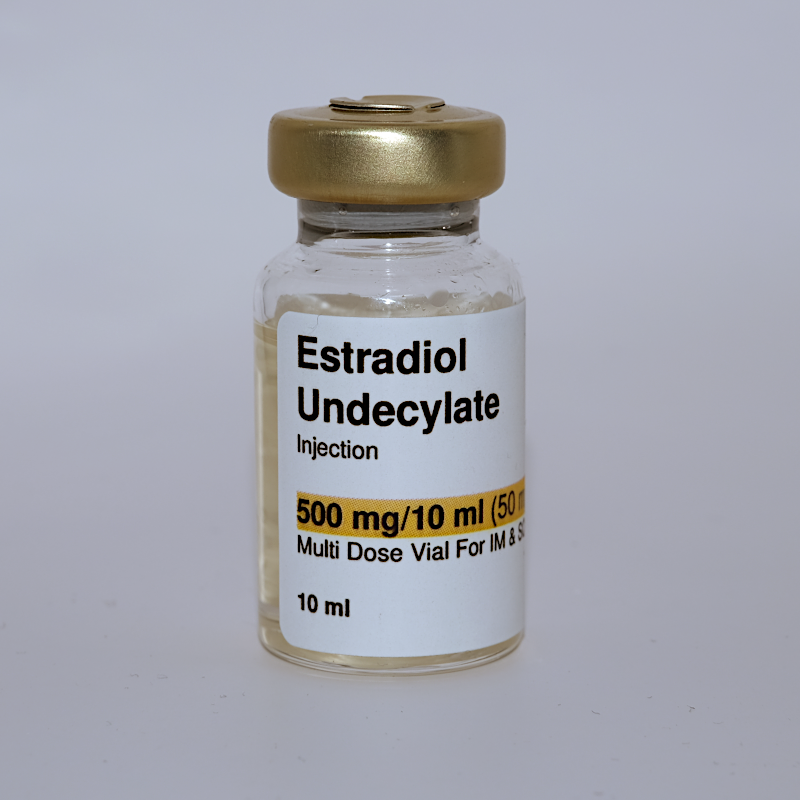 Estradiol Undecylate is an estered form of bioidentical estradiol suspended in an oil solution making it suitable for subcutaneous and intramuscular injections. Esterification is the process of combining Estradiol with an acid which the human body will then slowly break down over time, creating a slow-release form of the medication so that it can be delivered as larger injections at lower frequencies, typically around weekly. Estradiol has been delivered in this form for almost a century and it's a well-studied, safe and convenient process. Estradiol Undecylate has a biological half-life of ~30 days.