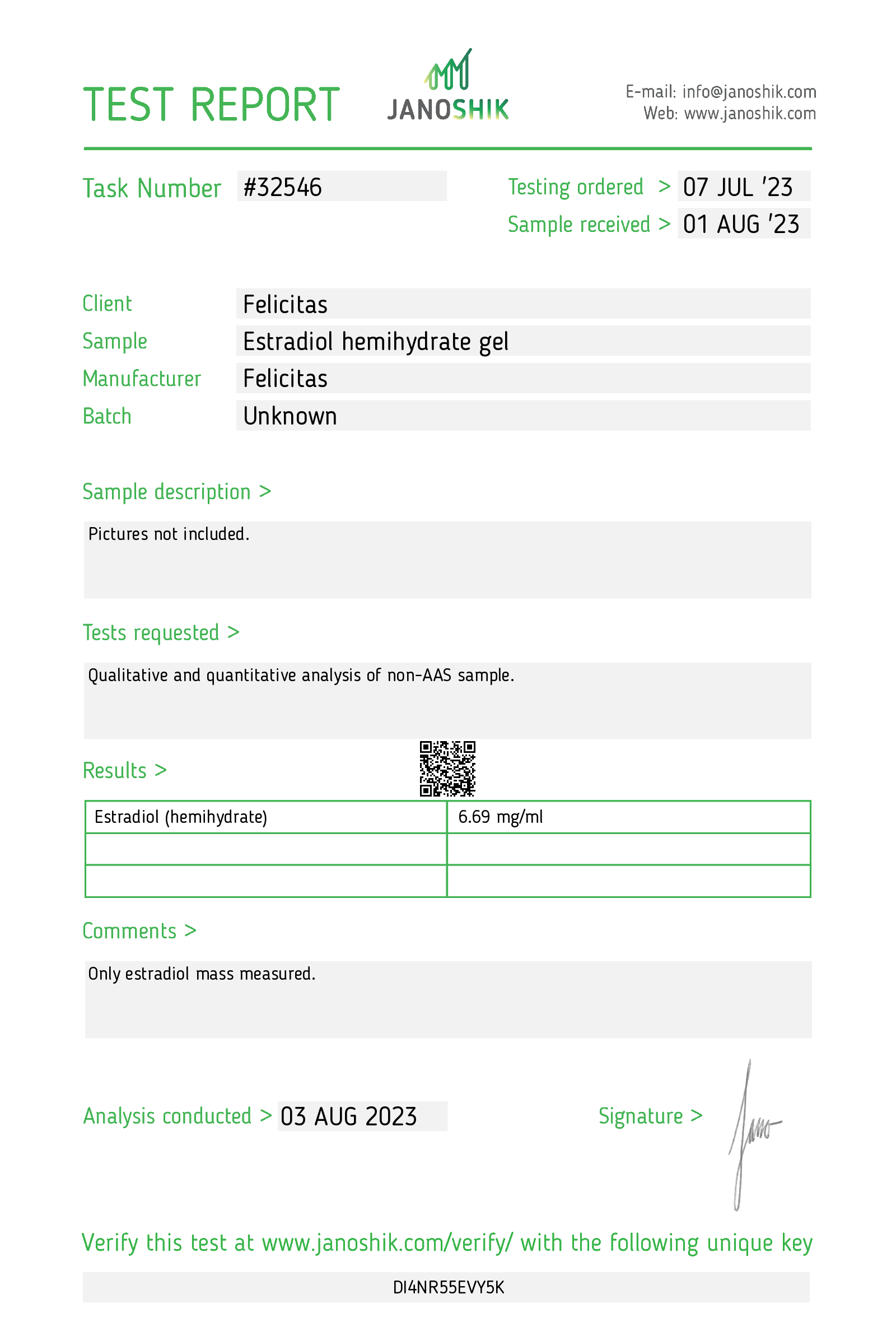 • Janoshik verification key: DI4NR55EVY5K