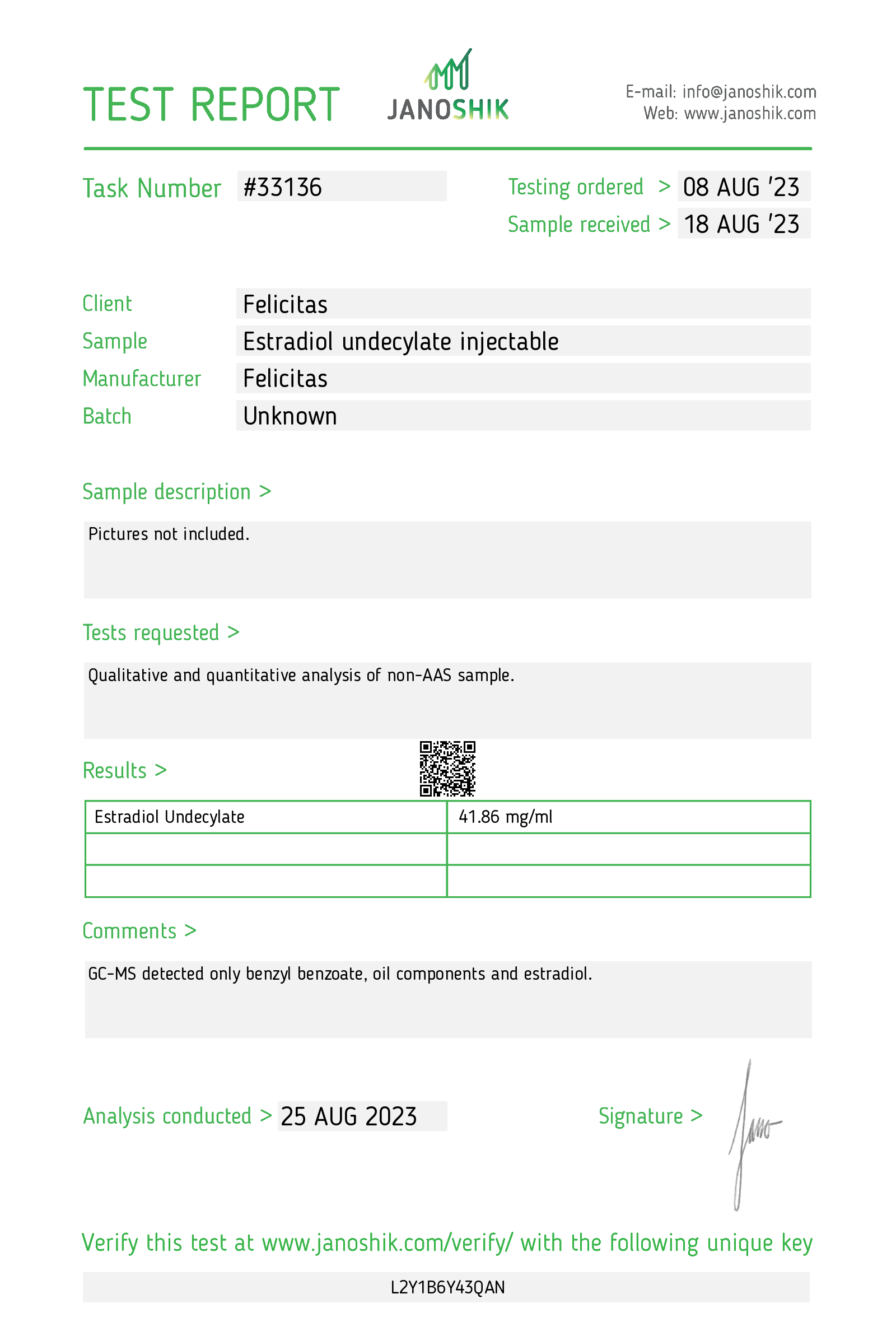 • Janoshik verification key: L2Y1B6Y43QAN