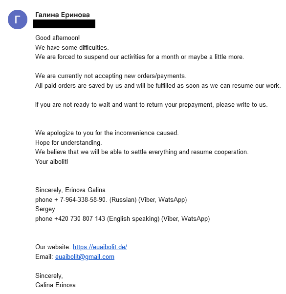 - 2022.11.22 EUaibolit.de temporary closure note added (email from 2022.11.18).